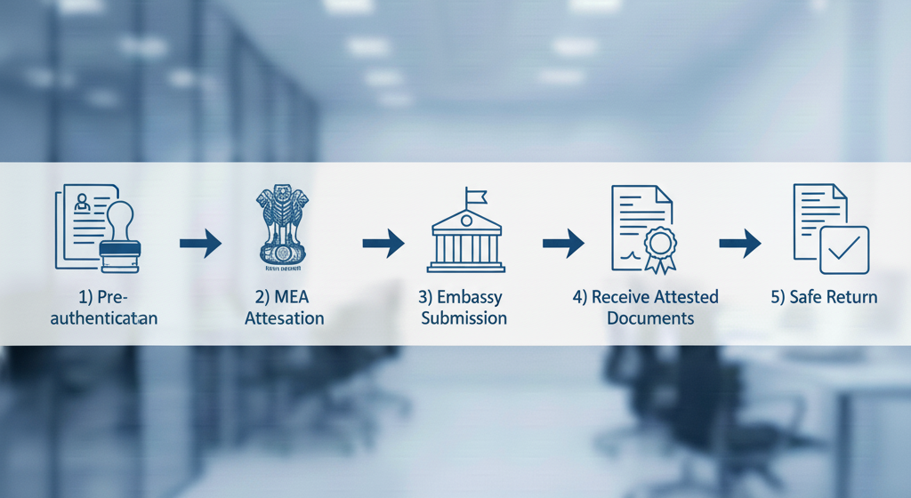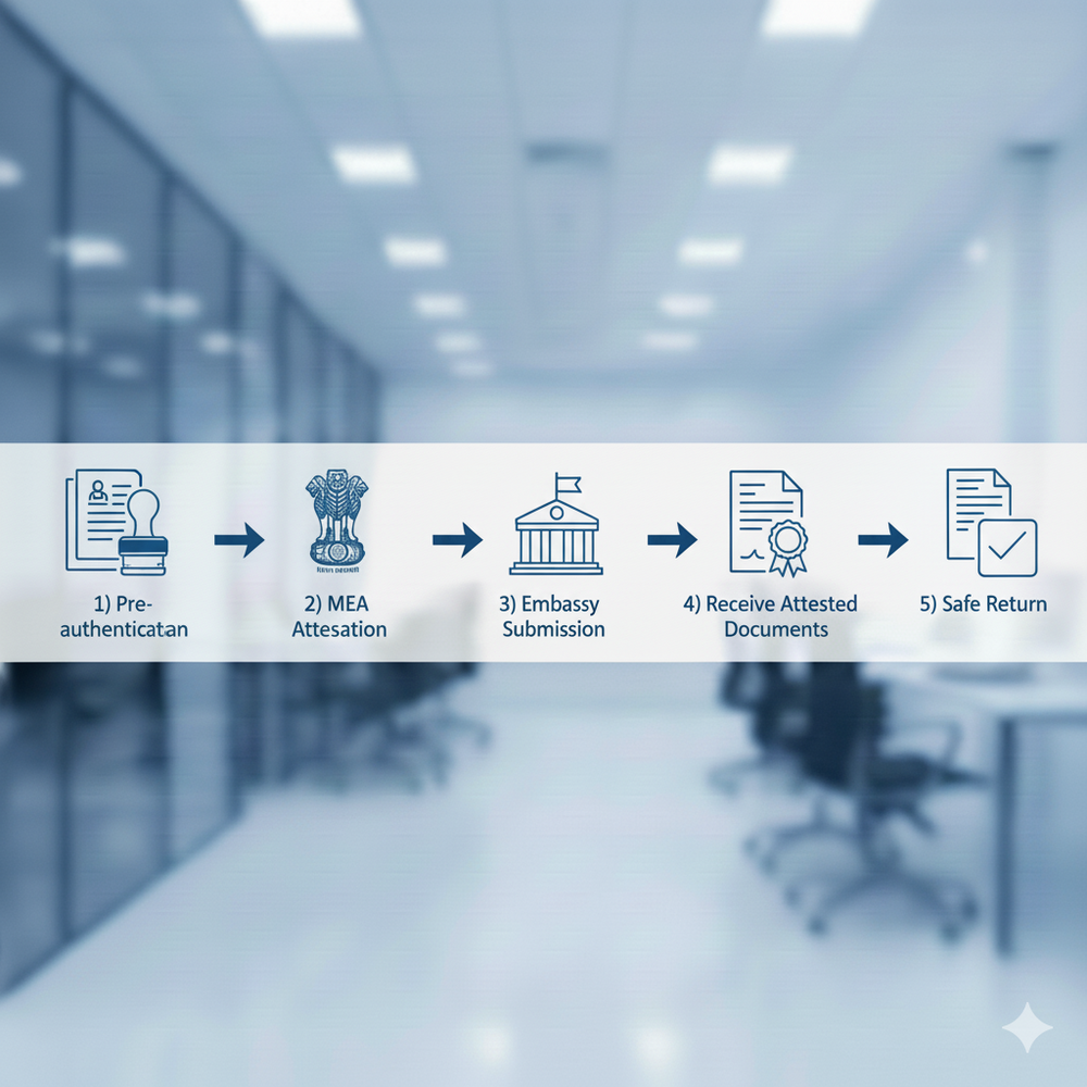 Embassy Attestation is the process of getting your documents verified by the Embassy or Consulate of the country where you are planning to study, work, marry, or settle. Unlike Apostille (which is valid only in Hague Convention countries), Embassy Attestation is required for non-Hague countries such as UAE, Saudi Arabia, Qatar, Kuwait, Oman, China, Egypt, Vietnam, etc.