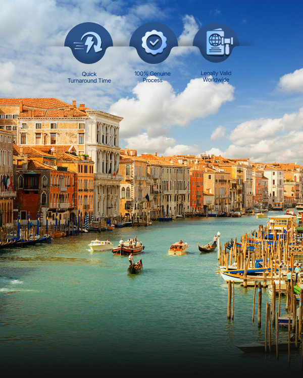 •Once Apostilled, your document is directly accepted in Italy — no Embassy attestation required.