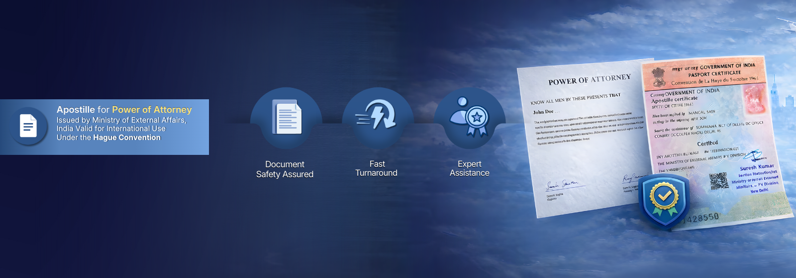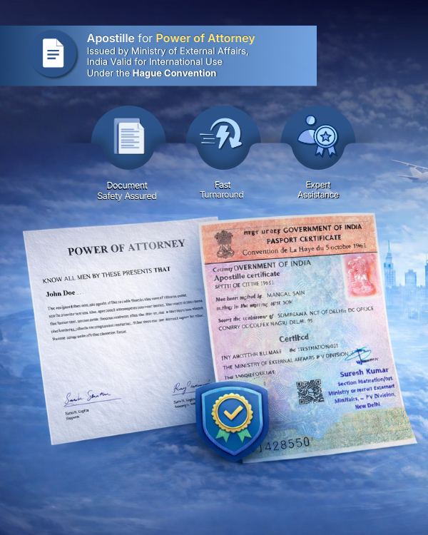 A Power of Attorney (POA) Apostille is the legalization of your POA document by the Ministry of External Affairs (MEA), India, so it is valid and legally accepted in Hague Convention countries. It certifies that your POA is genuine and can be used abroad for legal, business, or property-related matters. ________________________________________