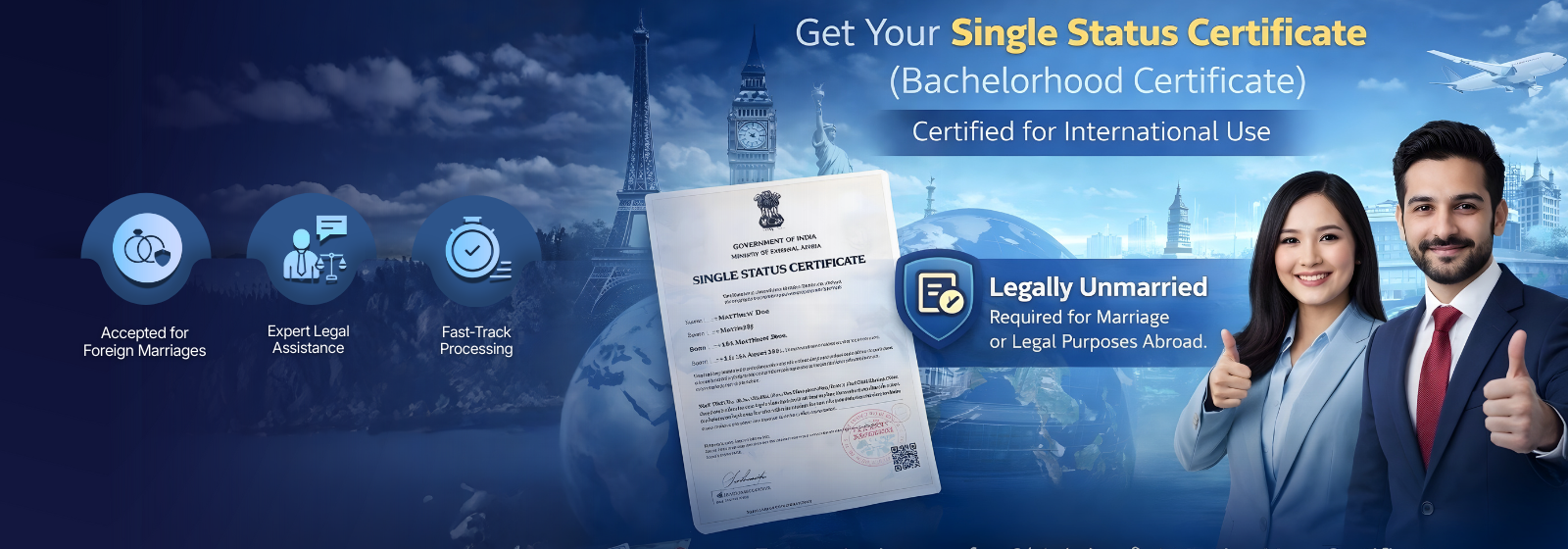 A Single Status Certificate (also called a Bachelorhood Certificate ) is an official document issued by Indian authorities confirming that an individual is legally unmarried. It is required for marriage or legal purposes abroad. Earth Lingua helps in obtaining, attesting, and making this document ready for international use.